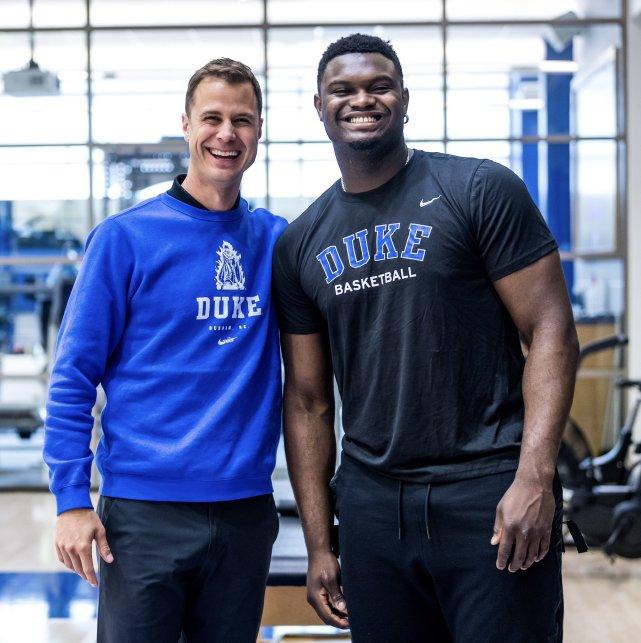 不少NBA球员在休赛期都喜欢回到母校训练,锡安也是如此。他只在杜克打了一年就参加NBA选秀,成为状元。在杜克效力的那一年,锡安打了33场比赛,全部首发,场均出战30分钟,贡献22.6分8.9篮板2.1助攻2.1抢断1.8盖帽,投篮命中率68%!