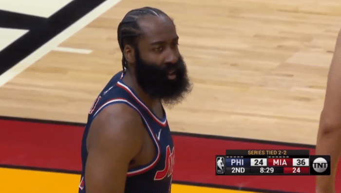 首节比赛,76人开场与热火僵持,恩比德急停跳投和反击上篮,哈登强硬2+1,可76人10-9之后集体哑火,被热火打出12-0攻势并且落后11分,哈登二次补篮止血以及小抛投得分,无奈热火进攻火力十足,76人第一节落后12分,登帝组合单节11分,全队19分,恩比德飞身救球险受伤,捂着背部十分痛苦;大帝还惨遭阿德巴约隔扣。
