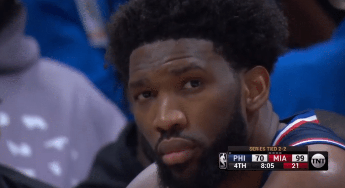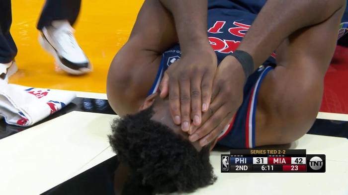 JRS直播网05月11日讯 ,NBA季后赛东部半决赛,76人客场35分惨败热火,大比分2-3落后丢掉赛点,恩比德全场12投7中拿到17分5篮板2助攻,上半场仅6分遭狠批,飞身救球太拼,骨折的面部被球砸太痛苦;下半场第三节爆发仍无济于事,最终输掉天王山。