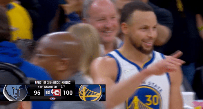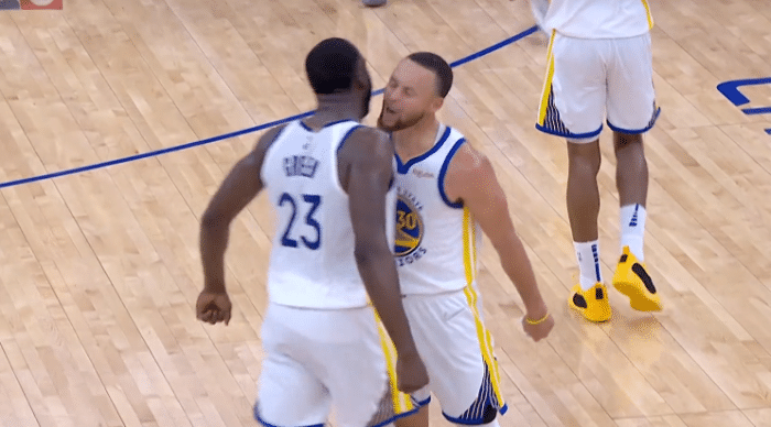最后时刻,勇士投篮哑火,终场前45.7秒,库里造犯规两罚全中,勇士94-93反超1分;小杰克逊关键投篮不进,库里被推倒再次上罚球线,两罚再有,格林制胜防守,库里再次罚球,最终勇士主场拿下G4,系列赛3-1领先多赛点;库里疯狂怒吼庆祝。