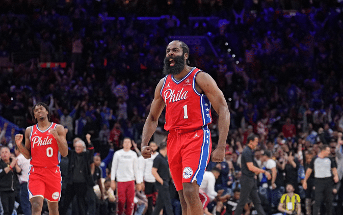 76人官方更是称赞哈登是后撤步之王!此役哈登通过后撤步三分球,杀死了胜负悬念。