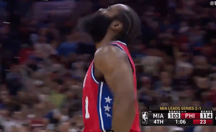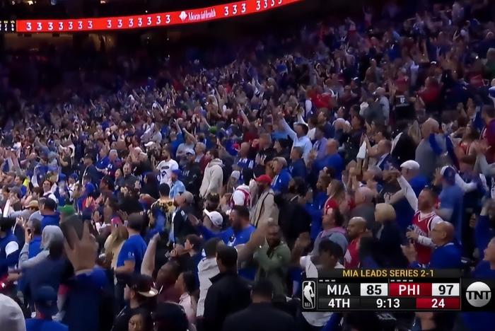 但热火没有放弃,巴特勒、奥拉迪波和阿德巴约联手打出7-0!又是哈登,强行三分飚中!巴特勒和阿德巴约再得5分,还是哈登三分再中!这一场比赛哈登彻底爆发,球迷也给他送上热烈的欢呼。最后阶段,哈登倒地三分再中!114-103,费城锁定胜局!