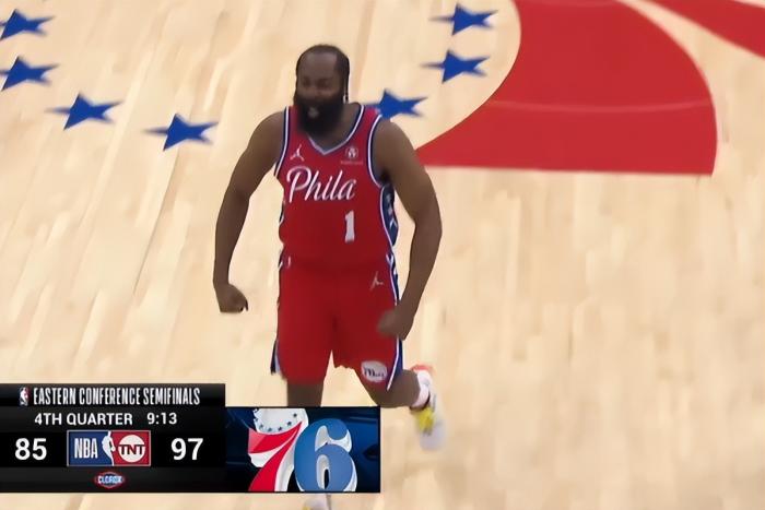 不过进入末节之后,费城在没有恩比德的情况下突然发力。先是哈里斯三分飚中,随后哈登突破造犯规两罚全中。接着又是哈登,直接张手三分命中!费城97-85拉开比分,哈登也非常激动,握拳怒吼,全场欢声雷动。费城随后一度101-97领先到14分,看起来胜利在望。