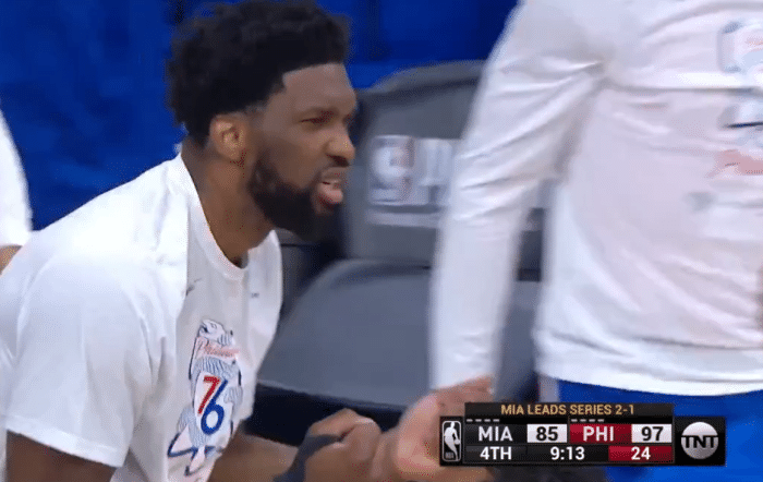 此役前三节比赛,双方打得势均力敌。费城方面恩比德和哈登发挥稳健,恩比德三节24分,哈登三节15分。而热火方面巴特勒依然是球队的中流砥柱,尤其第三节单节轰下17分,三节结束已经拿到32分!三节战罢,费城89-85领先4分。