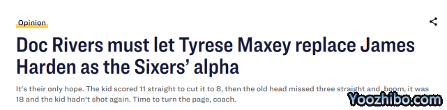 JRS直播网05月06日讯 ,《费城问询报》专家Marcus Hayes 喊话76人主帅里弗斯,0-2落后的局面让他认为是时候给马克西无限开火权了,也该让哈登成为目前的第二选择了。
