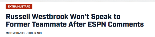 JRS直播网05月06日讯 ,NBA评论员帕金斯在一档节目上谈到了威少,他表示自己在赛季中建议湖人交易威少后,威少就再也没有搭理过他。两人曾是雷霆前队友,关系一度很不错。