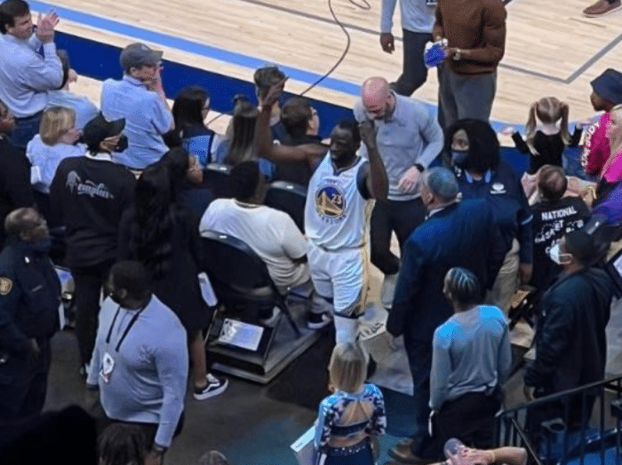 同样是在第一节,格林惨遭蒂尔曼肘击,右眼附近撕裂流血,因伤返回更衣室接受缝针治疗,离场时竖中指回应球迷的嘘声;如今联盟追加罚单,格林因冲球迷竖中指被罚2.5万美元。