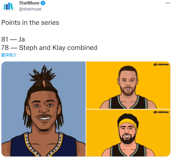灰熊和勇士系列赛前两战,莫兰特总共轰下81分,两战总得分比库里和汤普森(78分)之和还多;库里表现还算不错,但克莱状态糟糕太拉胯,两战38投11中、三分球22投5中,总共贡献27分;系列赛G3将在大通中心对阵,克莱有望迎来大爆发。