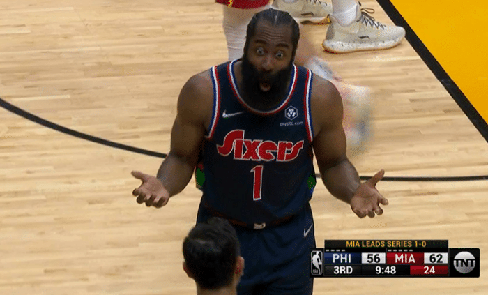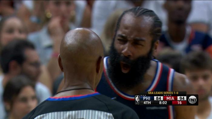 JRS直播网05月05日讯 ,NBA季后赛第二轮76人又不敌热火,系列赛大比分0-2落后;恩比德因伤继续休战,哈登全场出战41分钟15投6中、三分5中1拿到20分9助攻4篮板1盖帽3失误,季后赛连续12场得分低于25分创首发后最长耻辱纪录,下半场5中1仅4分,多次怒吼裁判,坐替补席一脸沮丧。