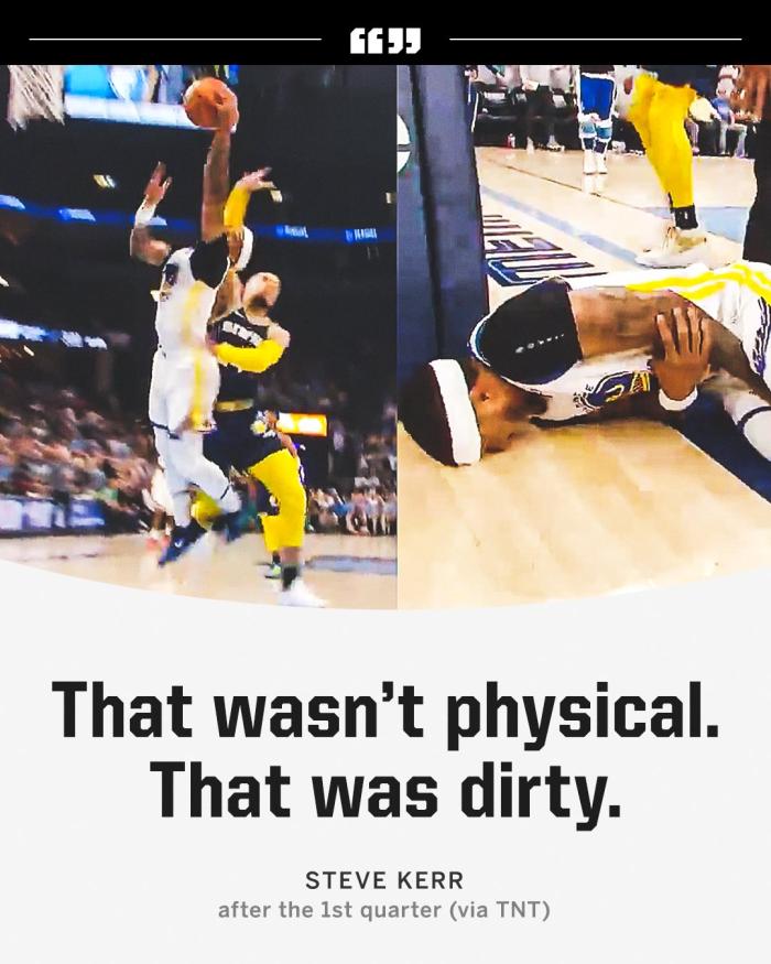 第一节9分08秒,小佩顿上篮时惨遭布鲁克斯凶狠恶犯,被打到头部并且从空中摔倒导致手肘受伤,之后小佩顿离场,经过一番检查后,勇士官方宣布小佩顿因左肘受伤而退出本场比赛,首发出战仅打2分多钟就受伤退赛。