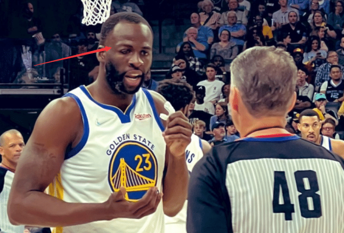 第一节8分54秒,格林惨遭蒂尔曼肘到面部,捂着面部痛苦倒地,裁判没有任何吹罚;格林返回更衣室,离场时冲着灰熊球迷竖中指;勇士官方宣布格林有眼附近撕裂,缝针后回到比赛。