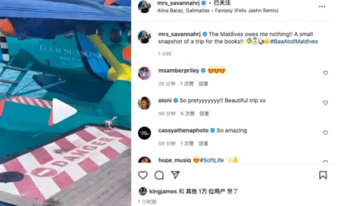 詹姆斯选择了亚洲之旅,他带着全家去了马尔代夫,詹嫂莎瓦娜还在社交媒体上兴奋的晒出了照片。现在的詹姆斯已经来到了迪拜,和他的朋友们开启了奢侈的旅行,通过詹姆斯和詹嫂的社交媒体就可以看出来,一行人在世界最高建筑前尽情畅饮,非常开心。