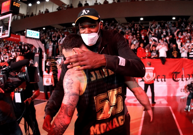 杜兰特去到了欧洲,在季后赛首轮被凯尔特人横扫出局之后的杜兰特享受生活,不同于詹姆斯一家人非常多,单身的杜兰特接受了前队友迈克-詹姆斯的邀请,去到了摩纳哥看欧冠比赛,还和迈克-詹姆斯拥抱。很显然来到摩纳哥之后,迈克-詹姆斯肯定要好好宴请下前队友詹姆斯了。