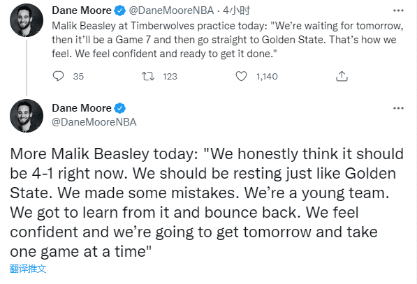 此外,该记者透露,有森林狼球员表示,他们坚信自己可以连胜两场拿下系列赛。
