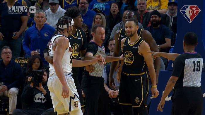 JRS直播网04月28日讯 ,NBA季后赛勇士主场再战掘金,G5第一节场上发生冲突事件,戈登和格林发生肢体接触,追梦不满戈登扣篮而被激怒,直接抱腿险摔倒戈登,最终裁判吹罚戈登技术犯规。