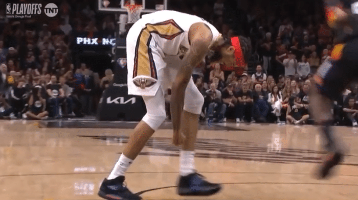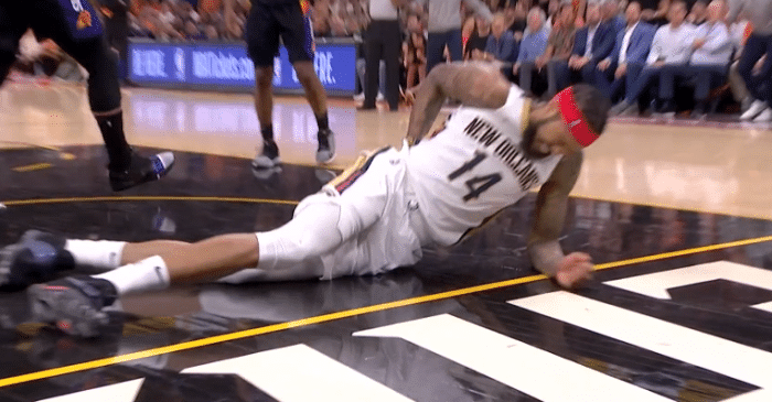 JRS直播网04月19日讯 ,NBA季后赛鹈鹕97-112不敌太阳,输掉天王山之后大比分2-3落后,末节英格拉姆两次遭遇惊魂时刻,空中重摔倒地,捂着腰部表情痛苦;疑似手部受伤同样忍痛坚持,下场后沮丧地怒摔矿泉水瓶;英格拉姆尽力了。