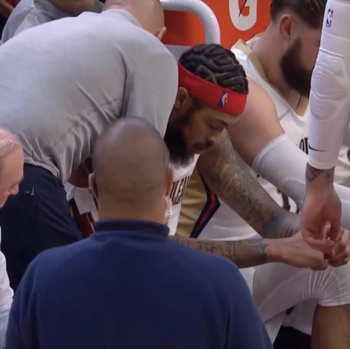 比赛暂停时,英格拉姆坐在替补席一脸沮丧,气得怒摔矿泉水瓶,以此宣泄内心的失落情绪;鹈鹕输球,英格拉姆两次遭遇惊魂时刻,本场比赛,英格拉姆出战40分钟贡献22分5篮板5助攻1抢断,目前还不清楚他的伤势,鹈鹕主帅威利-格林赛后表示:一旦检查出来伤情,我们就会第一时间公布。