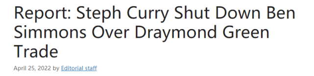 JRS直播网04月26日讯 ,在最新一期的节目中,名嘴斯蒂芬-A-史密斯爆料称,消息人士透露,费城76人曾想用西蒙斯换追梦,而这一提案被库里否决了。