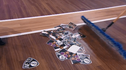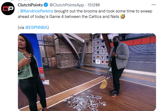 目前篮网已经被逼入绝境,G4开打之前,名嘴帕金斯在节目时用扫把扫地,地板上撒着篮网Logo和西蒙斯的照片,言外之意就是篮网将被横扫出局。