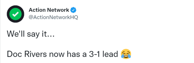 JRS直播网04月24日讯 76人客场102-110不敌猛龙,总比分变成3-1!美媒纷纷刷屏调侃76人主帅里弗斯,好熟悉的3-1啊,欢迎猛龙来到里弗斯的国度!美媒HoopsHype更是很损的第一时间更新社媒:“提醒一下,里弗斯是唯一一个三次3-1领先被翻盘的主教练!”如今,又一个3-1来到面前,里弗斯慌了吗?