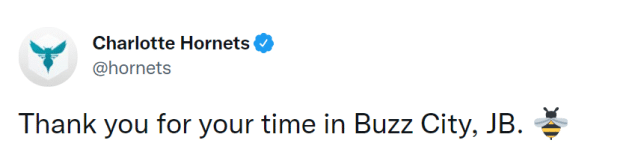 JRS直播网04月23日讯 ,夏洛特黄蜂官方宣布,球队已经正式解雇主教练詹姆斯-博雷戈。官方社媒上写道:“感谢您为Buzz City(蜂鸣之城)所做的一切,JB(博雷戈)。”