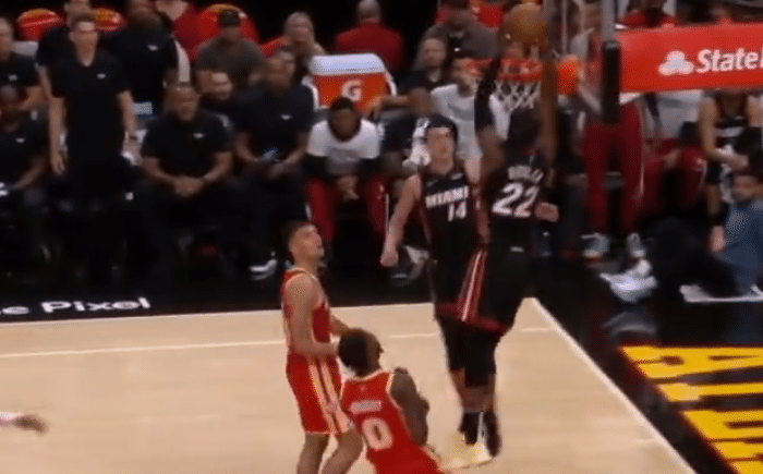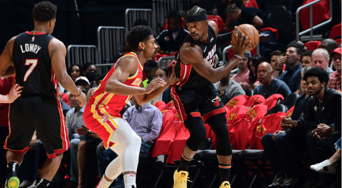 第四节,文森特传球,巴特勒空切暴扣。邓肯-罗宾逊三分球不中,巴特勒抢到进攻篮板之后助攻戴德蒙篮下打进。巴特勒助攻邓肯-罗宾逊命中三分球。老鹰一波流缩小差距,当奥孔武的2+1让老鹰反超3分,巴特勒立刻用三分球回应,扳平比分。特雷杨两罚全中之后,巴特勒助攻塔克在底角命中三分球,热火再度领先。巴特勒关键跳投没有命中,特雷-杨在还剩下4.4秒的时候抛投打进,热火落后1分。最后时刻,巴特勒投丢绝杀的三分球,热火一分惜败。