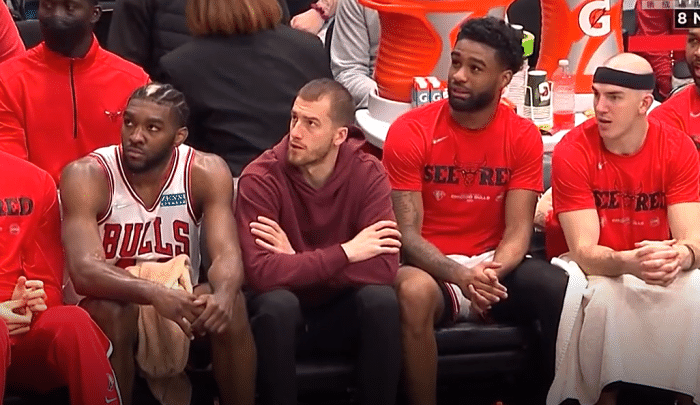最后阶段,双方都撤下主力。坐在板凳席上的德罗赞,目光呆滞神情沮丧,而公牛众将也都脸色凝重,主帅多诺万强装镇定,但身边的助教一脸愁容。而雄鹿一边,球员们表情非常轻松,因为这场胜利来得有些太容易了。