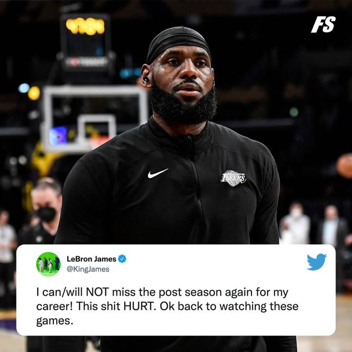 JRS直播网04月23日讯 ,湖人球星勒布朗-詹姆斯的承诺言论引热议,詹姆斯发推写道:剩余生涯我再也不会错过季后赛!这TM太伤心!好了!继续看比赛!
