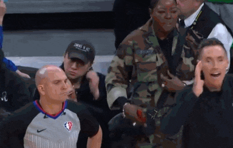旺达喷了一阵子裁判,看了会儿手机,正当她张嘴准备继续骂裁判时,篮网主帅纳什突然跑到她身前,冲着场上的球员喊些什么。或许是怕影响纳什布置战术,旺达安静了一会儿。