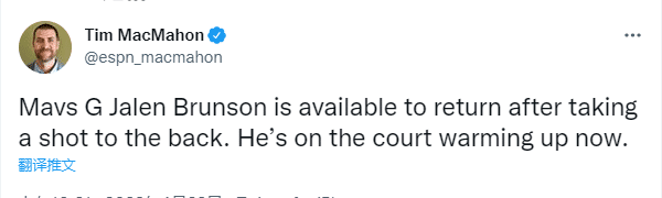 NBA季后赛独行侠客场对阵爵士,系列赛G3东契奇因伤继续休战,东契奇还没复出,独行侠另一主力险受伤,布伦森被爵士悍将故意撞倒,捂着腰部一瘸一拐离场并返回更衣室,所幸伤势无碍,下半场可以继续出战。
