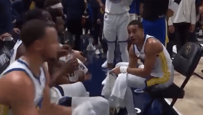JRS直播网04月22日讯 ,勇士客场击败掘金从而拿到G3,3-0领先手握4个赛点,距离晋级仅差一胜;今天勇士水花茶三兄弟合砍80分,其中普尔还客串主帅,坐在椅子上训话勇士四大主力。