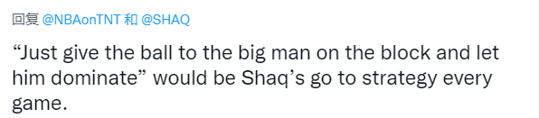 对于奥尼尔的言论,有球迷表示:只要把球给他内线的大个子并且让他统治比赛,这就是奥尼尔每一场比赛的执教战术。