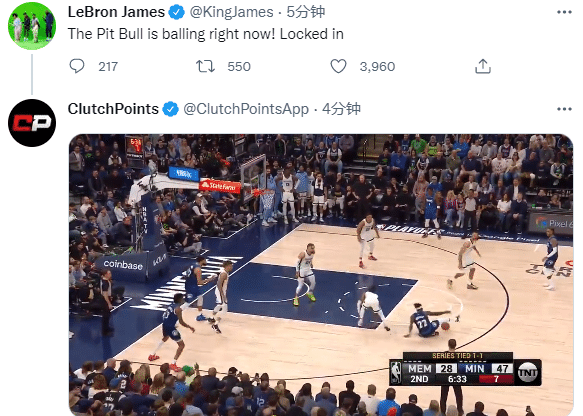 JRS直播网04月22日讯 ,NBA季后赛森林狼再战灰熊,G3再次大战,森林狼悍将贝弗利打出血性和侵略性,多次单挑莫兰特并且做出嘲讽莫兰特太矮小的手势;急中生智砸板空接上篮一幕引热议,詹姆斯发推盛赞:斗牛犬正在大秀特秀!锁定!