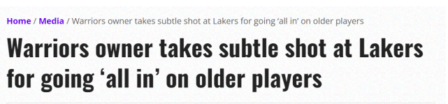 湖人的2021-22赛季惨淡收场,他们已经成为对手眼中的笑话。北京时间4月20日,勇士老板拉科布接受采访时,疑似暗讽湖人的引援策略,在社媒上引起关注。他在接受The Athletic 的 Tim Kawakami采访时,谈到勇士的未来,并似乎影射了湖人糟糕的阵容建设和管理。