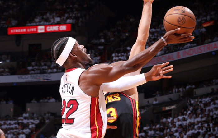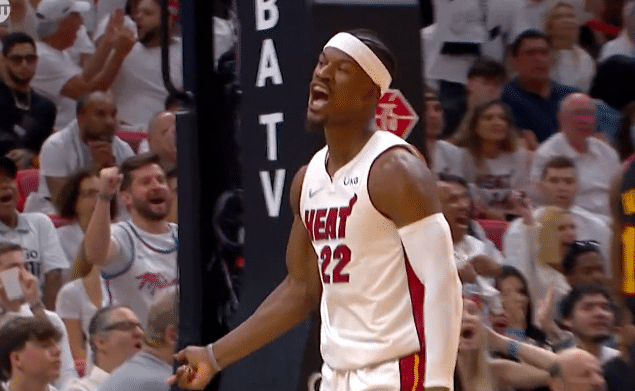 JRS直播网04月20日讯,NBA季后赛热火主场再次击败老鹰,系列赛大比分2-0领先,巴特勒全场出战39分钟,25投15中、三分7中4和罚球12中11,狂砍45分5篮板5助攻2抢断,得分创季后赛生涯新高,怒吼以及抓筐拍板庆祝,末节把球鞋拼掉了,关键56秒连得7分太狠。