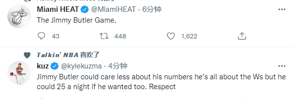 巴特勒三节轰下36分4篮板3助攻,热火官方盛赞这是巴特勒的比赛,库兹马发推:巴特勒不在乎数据,只在乎赢球,如果他想的话,可以每场都拿到25分。
