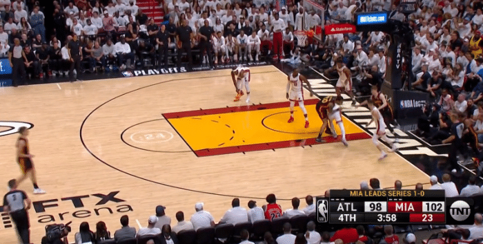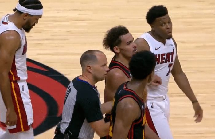 第二节,热火和老鹰继续僵持对决,巴特勒再次轰进三分,突破杀到禁区上反篮,此时洛瑞和亨特发生激烈对峙,互喷垃圾话双双吃T;打着打着,老鹰反超比分,不过两队分差不大,上半场最后129秒,巴特勒里突外投连得7分,助热火半场56-54领先2分。