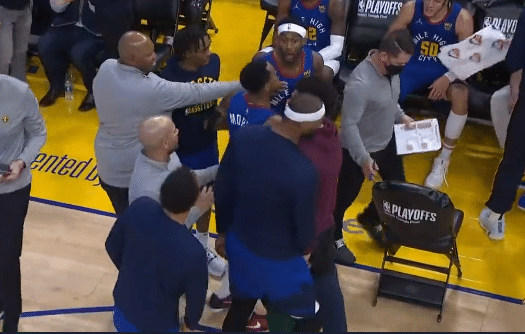 这场比赛第三节开场不久,勇士便打出小高潮!而在一次暂停期间,巴顿和考辛斯爆发了非常激烈的内讧。两人怒目相对,嘴里也都喋喋不休。养伤的穆雷上前劝阻,还被推开,场面一度比较混乱。而这之后,勇士汤神库里和普尔彻底爆发,分差瞬间来到20分以上。
