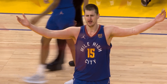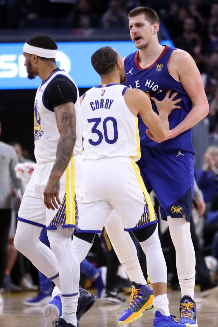 首节比赛,勇士开场被打7-0,维金斯和普尔得分回应,第一节6分21秒,库里替补上场,急停干拔得分,维金斯连续命中两记三分,约基奇拼尽全力;勇士15-26落后11分之后,库里轰进三分,勇士10-0疯狂反扑;值得一提的是,约基奇不满被小佩顿拍打屁股,库里充当和事佬,第一时间拦住约老师。