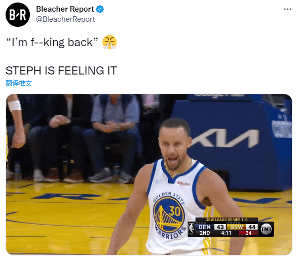 JRS直播网04月19日讯 ,NBA季后赛勇士再次打爆掘金,库里全场替补出战22分钟,17投12中、三分10中5轰下34分3篮板4助攻1盖帽1抢断,在场正负值+32太狠,季后赛3000分里程碑并且带队赢球,库里疯狂庆祝以及爆粗怒吼:我TM回来了;库里打得巴顿摊手跺脚,十分绝望;约基奇累计两T遭驱逐,空砍26分11篮板。