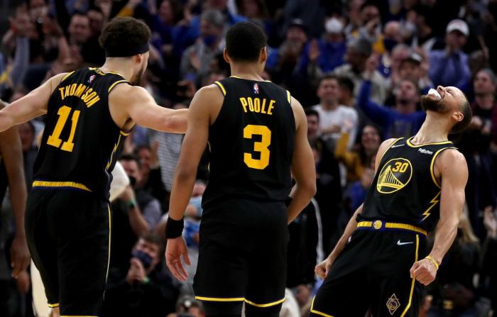 勇士三后卫(库里+汤普森+普尔)同时在场也疯狂至极,据统计,他们同时在场15分钟,勇士轰下51分12助攻且0失误,投篮命中率61%,三分命中率54%。