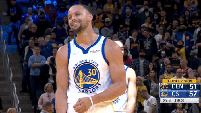 JRS直播网04月19日讯 NBA季后赛勇士再战掘金,库里再次替补上场,上半场替补上场12分钟8投6中、三分5中3拿到16分3篮板1助攻1抢断1盖帽,最后时刻罚球时全场球迷高呼MVP;库里季后赛得分突破3000分创纪录,队史第一人,詹杜登之后现役第四人。