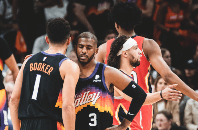 JRS直播网04月18日讯 ,NBA季后赛第二天,常规赛战绩高居全联盟第一的太阳迎来首秀,对阵附加赛连赢两场的鹈鹕。太阳最多时候一度领先23分,虽然鹈鹕下半场疯狂反扑,但保罗第四节接管比赛,最终太阳拿到季后赛开门红。