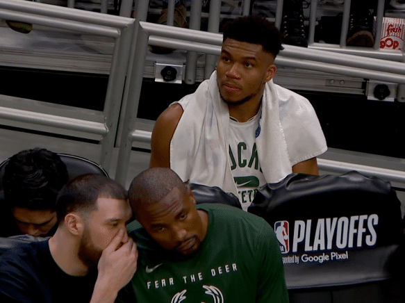 下半场,字母哥第三节带队保持领先,可是字母哥下场休息后,雄鹿突然被公牛打出13-0攻势,场上局势大变;见状雄鹿赶紧派上希腊神兽,字母哥连得5分,撞倒德罗赞打成2+1,此时雄鹿全场球迷高呼MVP,不过三节战罢,雄鹿仅领先3分。