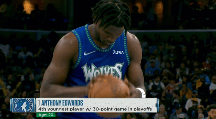爱德华兹季后赛生涯首秀创纪录,超越马布里创造新的队史球员季后赛首秀得分纪录,也成为NBA历史季后赛第4年轻轰下30+的球员;季后赛首秀得分也排在历史前列。