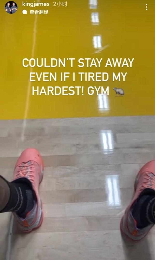 JRS直播网04月16日讯 ,詹姆斯更新社媒,晒出了自己在球场训练的动态,配文写道:“即使再累我也不能远离(训练)!球馆耗子。”在英语中,“球馆耗子”指的是训练狂人,詹姆斯自称“球馆耗子”,也是表达了自己一刻也离不开训练馆的心情。
