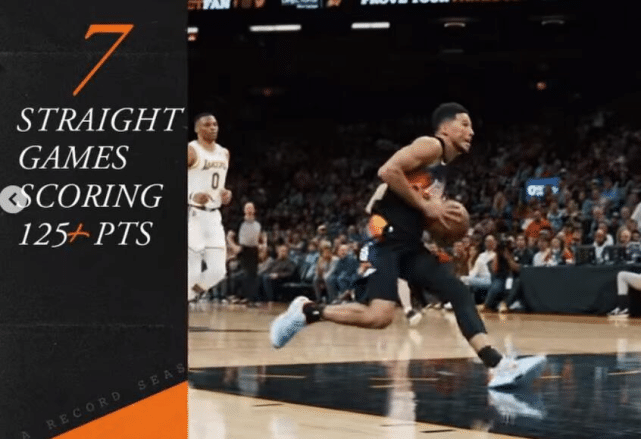 第六,太阳本赛季连续7场比赛得分125+,足见他们的进攻火力有多可怕!太阳是全联盟投篮命中率排名第一的球队。