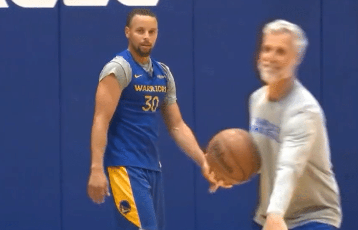 在今天的训练中,库里进行了罚球、中距离抛投以及急停远投三分等项目的训练,投篮手感火热,绕着半场跑动,连续五个点投进三分球;库里自由移动和行走,丝毫不受左脚韧带伤势的影响,目测他的伤势已经痊愈,很可能在季后赛首轮G1复出。