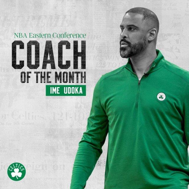 乌度卡率领凯尔特人在3-4月打出了15胜4负的战绩,这也是联盟这一区间最好的战绩。最终凯尔特人51胜31负,这是绿军队史上第三次由一名菜鸟主帅带队打出至少50胜的成绩。绿军晒图祝贺乌度卡当选月最佳教练。