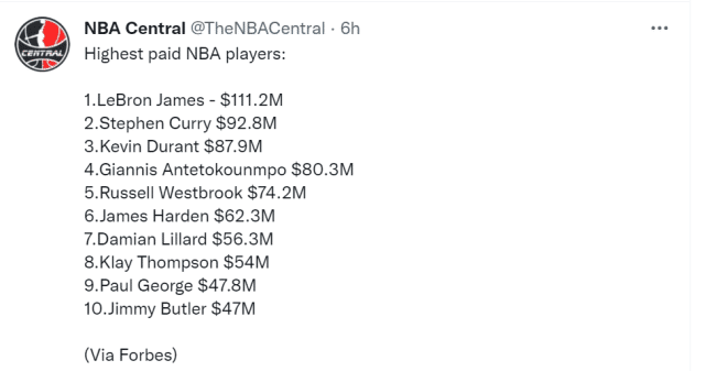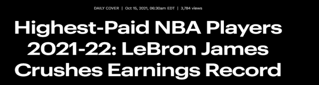 JRS直播网10月17日讯 ,福布斯公布了过去一年的NBA球员年收入排名,湖人球星勒布朗-詹姆斯以1.112亿美元排名第一,创造了现役球员的年收入新纪录。